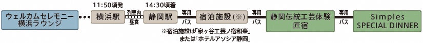 横浜駅を出発し、いよいよ東海道・富士クルーズの旅が始まります。昼食はフレンチの名店「エルマイヨン」。静岡の食材を使い、どこか優しい本格フレンチをお楽しみいただけます。車窓には相模湾、駿河湾そして日本が誇る美しい富士山。碧く煌めく車窓に思わず刻を忘れることでしょう。静岡に到着後は今川・徳川時代から受け継がれた静岡の伝統工芸の体験をお楽しみいただきます。夕食は静岡の名店Simples。静岡・焼津の「サスエ前田魚店」から仕入れた魚や静岡の生産者から受け取った食材を最大限に活かした静岡でしか味わえない料理をお楽しみください。
