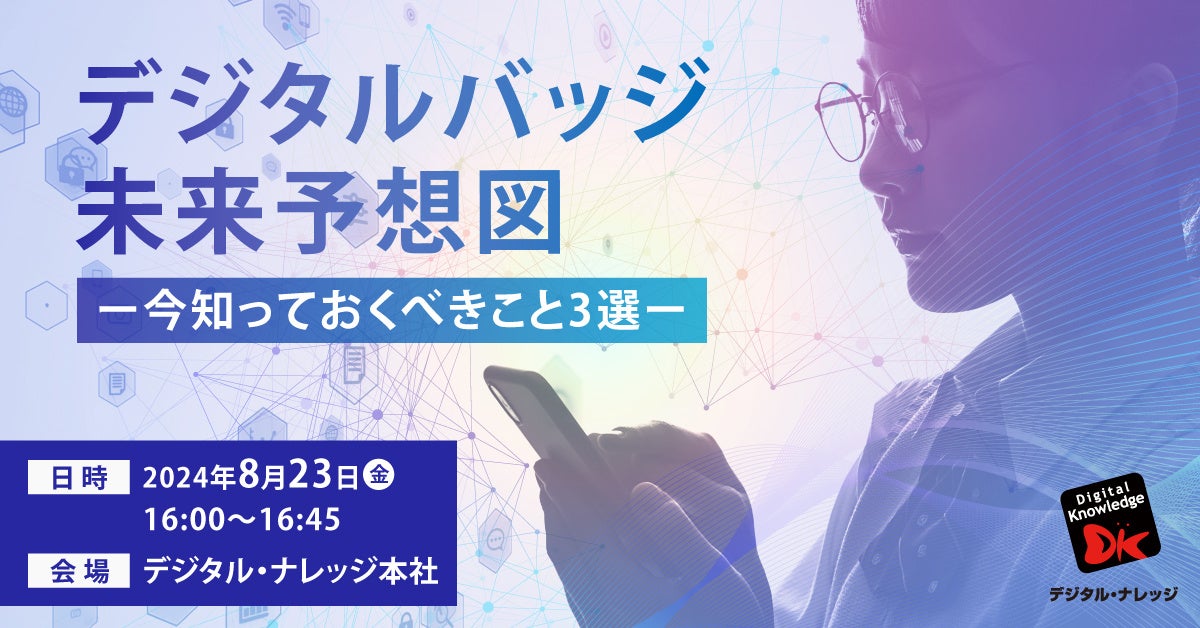 1995年創業のeラーニング専門ソリューション企業、株式会社デジタル・ナレッジ(本社:東京都台東区 代表取締役社長:はが弘明)は、8/23(金)「デジタルバッジ未来予想図ー今知っておくべきこと3選ー」セミナーをデジタル・ナレッジ秋葉原本社にて無料開催いたします。(https://www.digital-knowledge.co.jp/archives/38388/?pr)