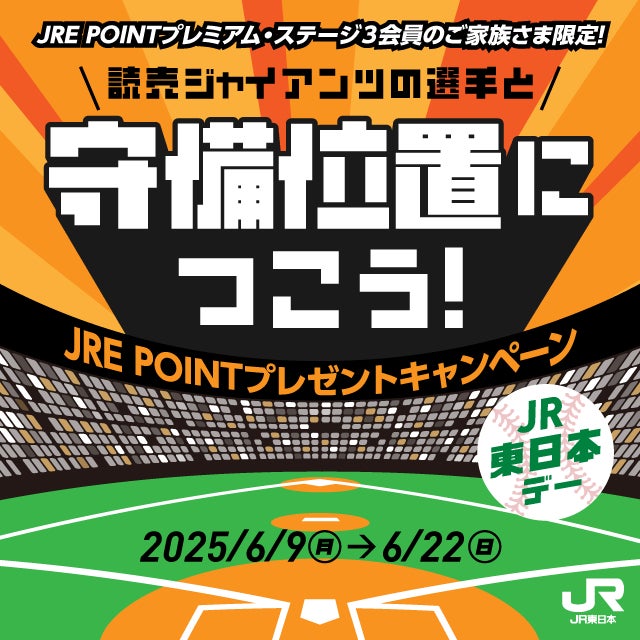〇さらに、JRE POINTプレミアム会員またはステージ3会員、かつ、家族メンバーに小学4年生~中学3年生の会員を登録している方の中から抽選で9名のお子さまに、読売ジャイアンツの選手と一緒に球場の守備位置につける「選手と守ろう~On Your Marks~」特典体験へご招待します。