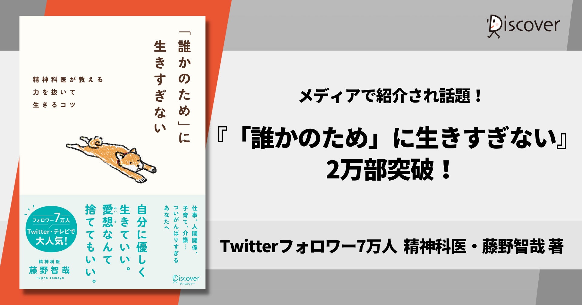 株式会社ディスカヴァー・トゥエンティワン(本社:東京都千代田区、取締役社長:谷口奈緒美)は2023年5月26日刊行の『「誰かのため」に生きすぎない』(藤野智哉・著)を増刷し、これにより2万部を突破しました。