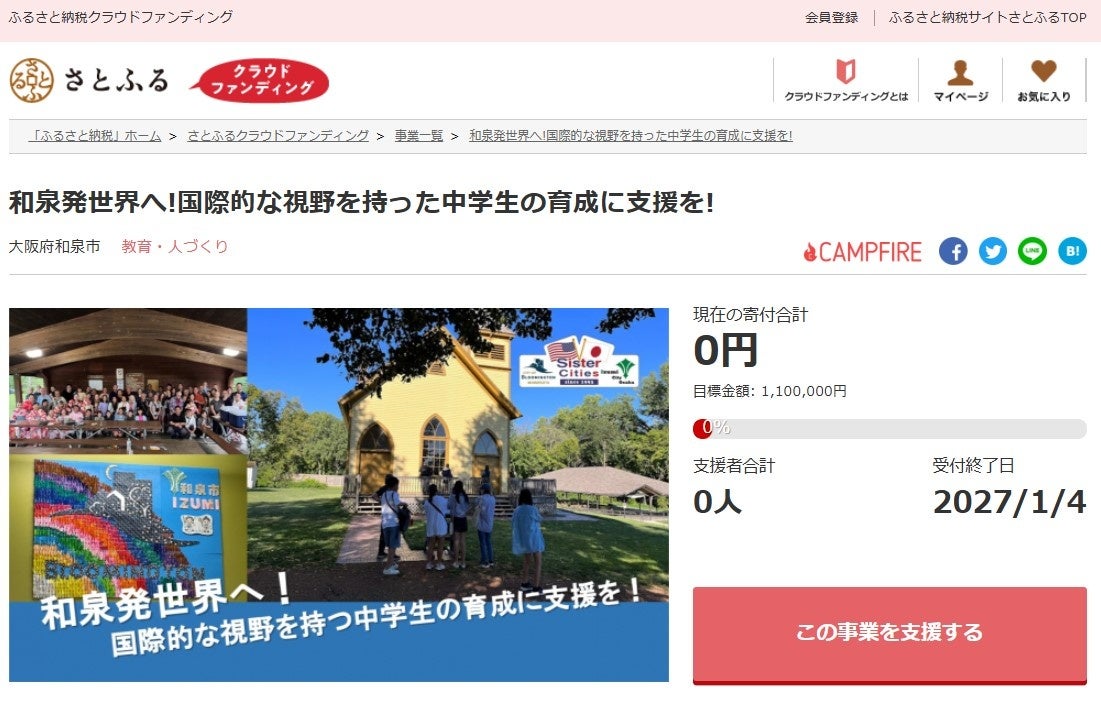 大阪府和泉市とふるさと納税ポータルサイト「さとふる」を運営する株式会社さとふる(本社:東京都中央区、代表取締役社長 兼 CEO:藤井 宏明)は、「さとふるクラウドファンディング」にて、大阪府和泉市における2事業の寄付受け付けを2025年10月17日より開始します。