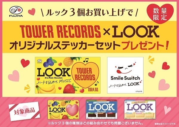 バレンタインデーという特別な機会に、ぜひ不二家『ルック』とタワーレコードがコラボレーションしたスペシャルな企画をお楽しみください。