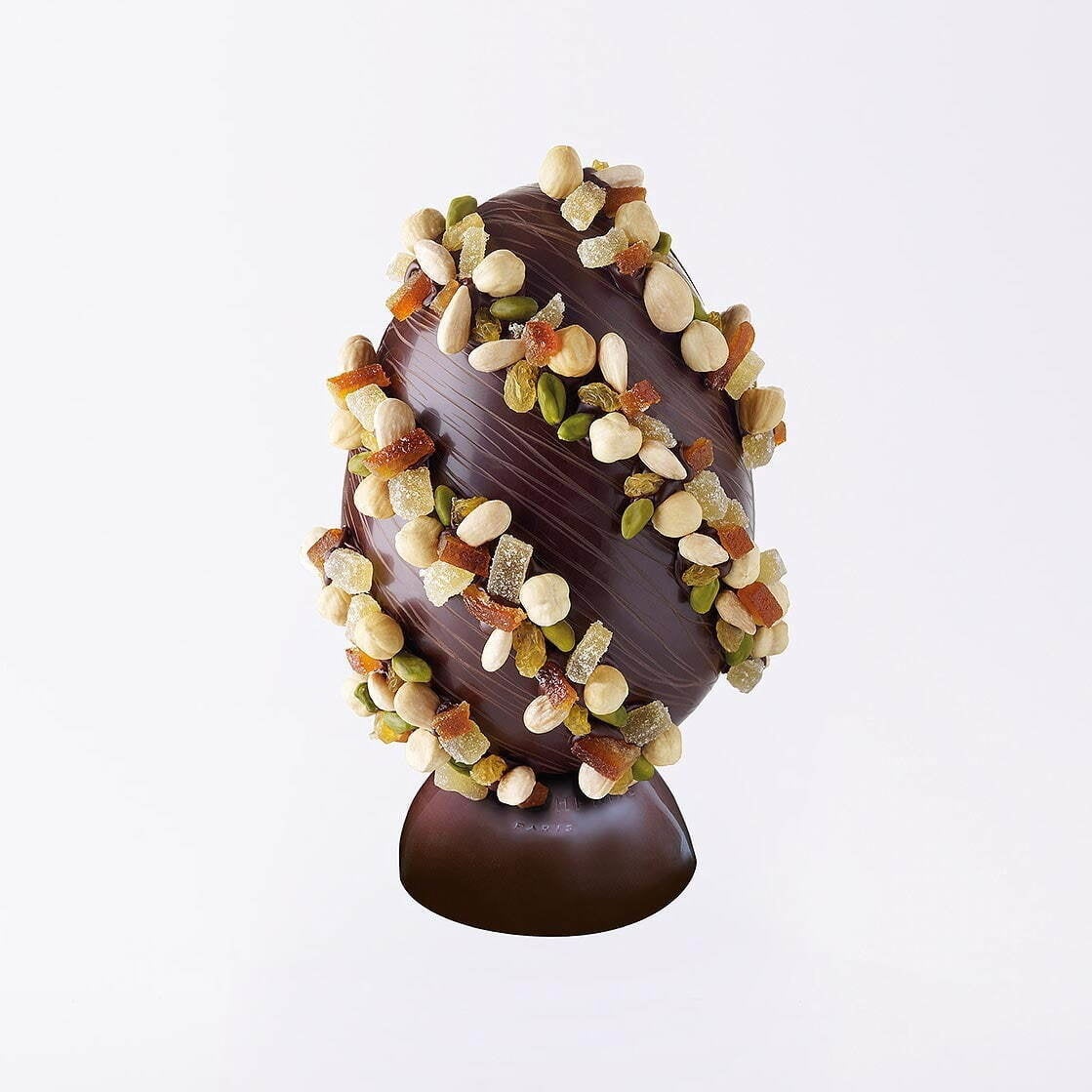 チョコレートにナッツやドライフルーツをあしらったフランスの伝統的な菓子「マンディヤン」から着想を得た卵型のチョコレート。