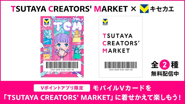 CCCMKホールディングス株式会社(本社:神奈川県横浜市、代表取締役社長兼CEO:髙橋 誉則)は、Vポイントアプリの「モバイルVカード」を好きなデザインに着せかえできる「Vキセカエ」(https://ip.tsite.jp/guide)において、新進気鋭のクリエーター約250名が集結するマッチングイベント「TSUTAYA CREATORS' MARKET」が2025年6月13日(金)に初開催されること記念し、イラストレーターわきさんによる描き下ろしポスターと「TSUTAYA CREATORS' MARKET」のロゴをあしらったデザイン2種を、2025年6月13日(金)から2025年6月30日(月)まで期間限定で無料配布いたします。