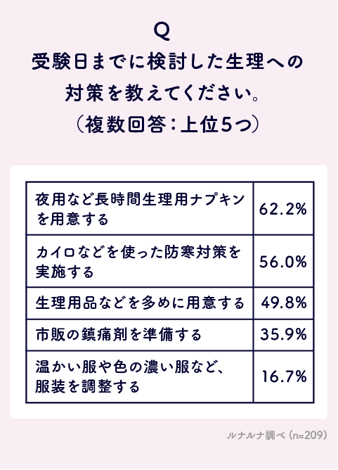 Q.受験日までに検討した生理への対策を教えてください。(複数選択)