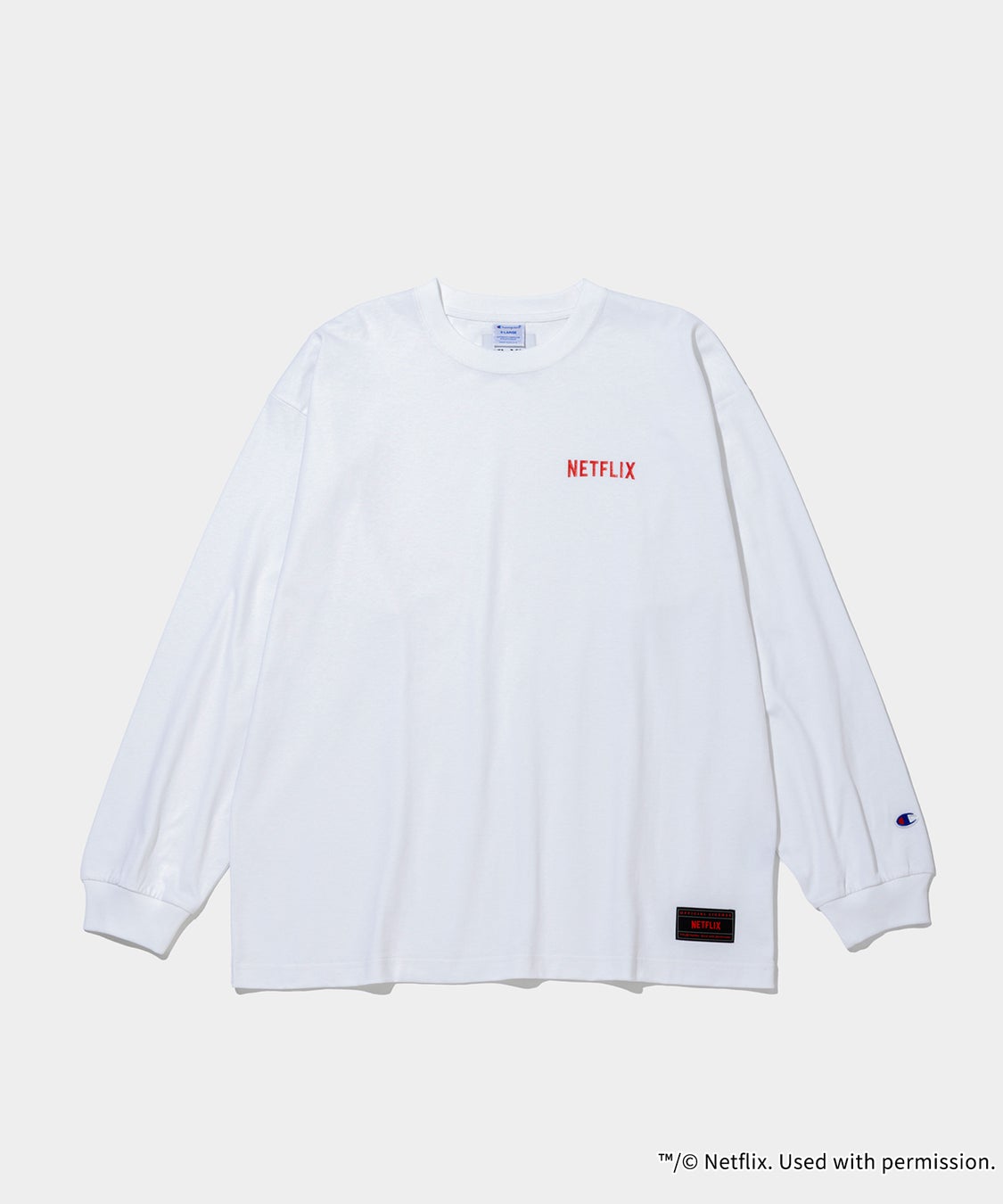 今回のポップアップストアでは、NetflixおよびV.A.のロゴを配した「Champion」のTシャツとスウェットや、「FRAGMENT」とのトリプルコラボレーションアイテムなどを展開します。一部アイテムには、Netflixの旧ロゴがデザインされています。また、トリプルコラボレーションアイテムのパッケージは、NetflixがDVDレンタルサービスを提供していた際に使用していた、赤い郵送の袋を基にデザインされています。そのほか、「ストレンジャー・シングス 未知の世界」や「エレクトリック・ステイト」、「イカゲーム」、「極悪女王」などの作品コラボレーションアイテムや、昨年大ヒットした「地面師たち」のオリジナルTシャツは新モデルを加えて販売いたします。