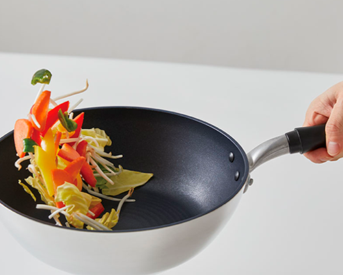 「毎日使いたくなる!日本製深型フライパン 26㎝」は、文字通り毎日使うことを考え、焼く、炒める、煮るなどさまざまな使い方ができる深型のアルミのフライパンです。8千人以上から寄せられたアンケートで最も求められた「こびりつきにくい」を実現するため、最高品質のテフロン™コーティングを施しました。北陸アルミニウムの伝統的な鋳造技術で作られたフライパンは、軽い上に耐久性も高く、手入れも簡単です。