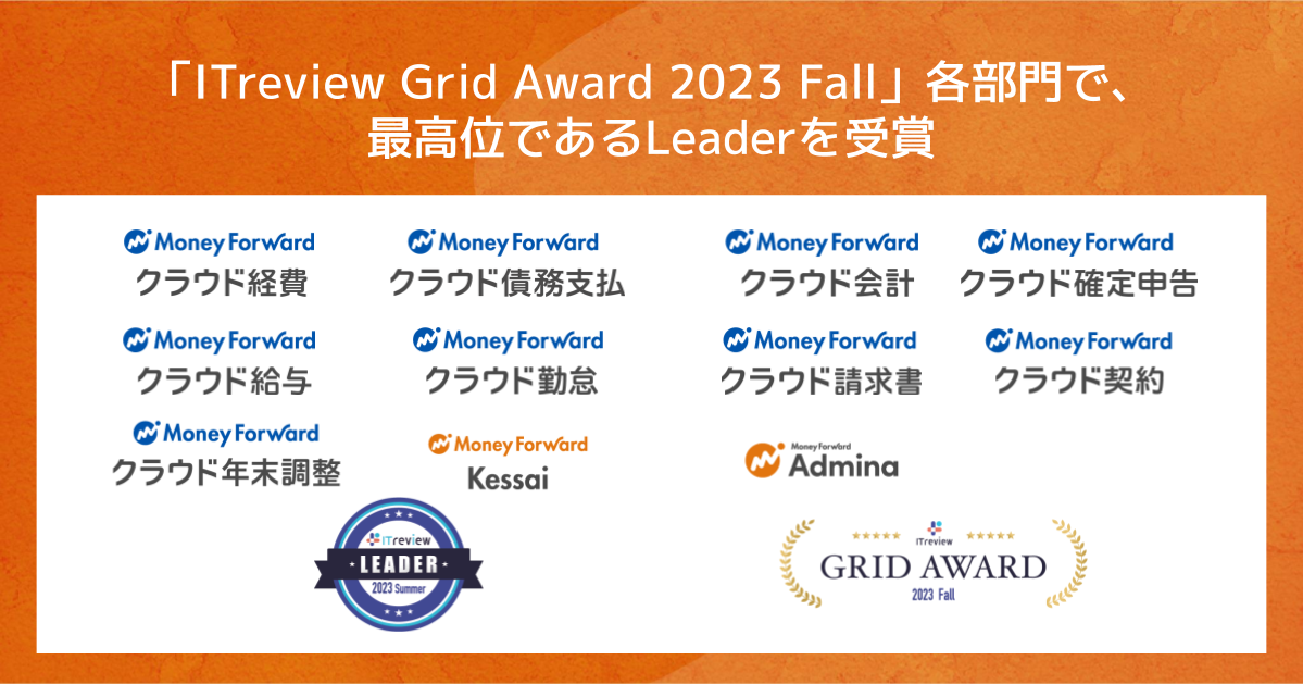 マネーフォワード、提供サービスが「ITreview Grid Award 2023 Fall」で受賞