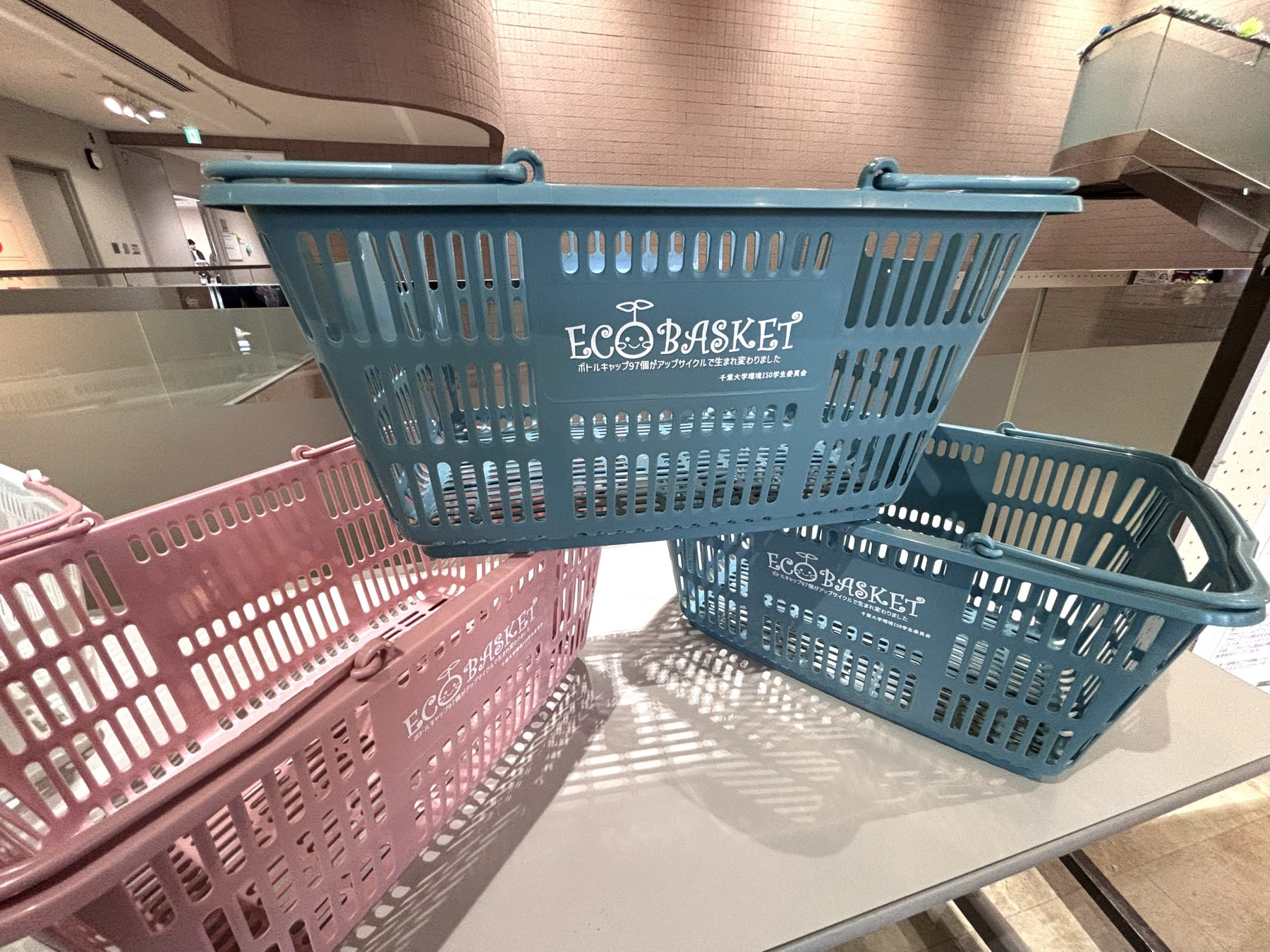 本製品は、ペットボトルキャップ97個を再利用して合計52個が作られており、名入れデザインは学生委員会の学生が担当しています。千葉大学生協の協力のもと、4月1日(水)より西千葉キャンパスのライフセンターと松戸キャンパスの園芸学部購買部で買い物カゴとして使用されます。また、生協食堂フードコートでは、同じく制作した底面のトレーと合わせた荷物入れ用のカゴとして活用され、座席混雑緩和および利便性向上にも寄与します。学生委員会のイベント運営においても活用予定です。