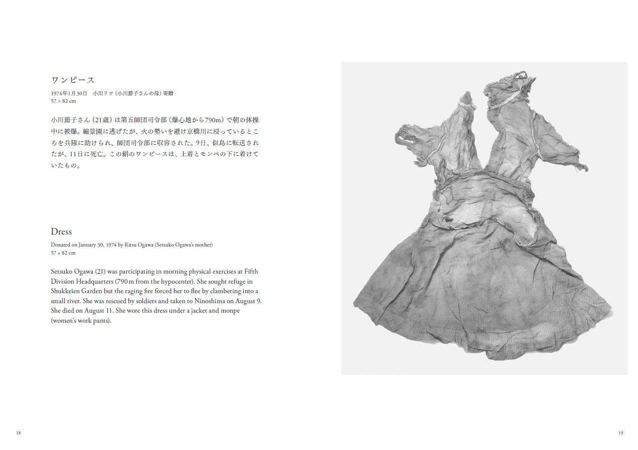 『Hiroshima Collection』は原爆被害の苛烈さ(熔解したビンや焼け落ちた仏頭など)や暴力的に遮断された日常の断片を伝える(中身が焼け焦げた弁当箱や破損した学生服など)被爆資料写真と、文字で記録された被爆直後の過酷な状況や遺された家族の悲しみを、見開きに配置した写真集です。核兵器の脅威が迫りつつあるいま、原爆がもたらす「リアル」を伝え、世界の在り方を問い直す1冊。大半の所蔵資料が被爆関係者の寄贈からなる広島平和記念資料館の図録的な意味合いも持ちます。