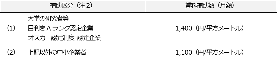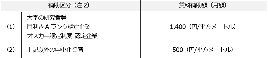 (注2)「目利きAランク認定」「オスカー認定」は、優良企業等を認定する京都市の制度です。補助区分の適用・交付期間・補助額等は『京都市新事業創出型事業施設活用推進事業補助金交付要綱』に基づき決定されます。