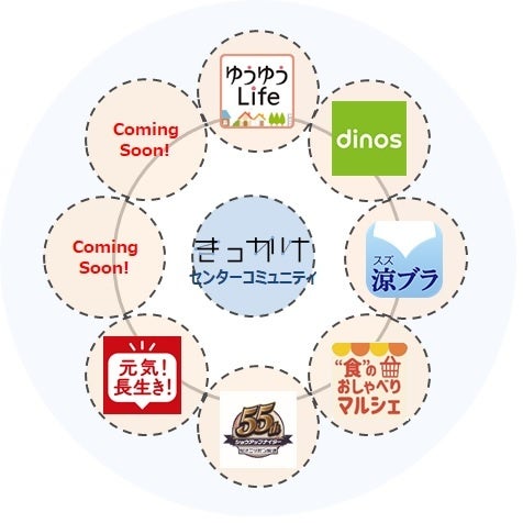 「きっかけ」は、ユーザーと企業・団体が共創を行うことを目的とした「パートナーコミュニティ」とともに、ショッピングモールのようなイメージで発展しており、相互にコミュニケーションを活性化させています。ユーザーは、中心(センター)にある「きっかけ」で、さまざまな会話やキャンペーンを楽しみながら、テナントにあたるクライアントのパートナーコミュニティにも自由に参加、回遊しています。2021年12月21日現在、パートナーコミュニティ参画社(団体)は6社。今後も続々と新規コミュニティオープンが予定されています。