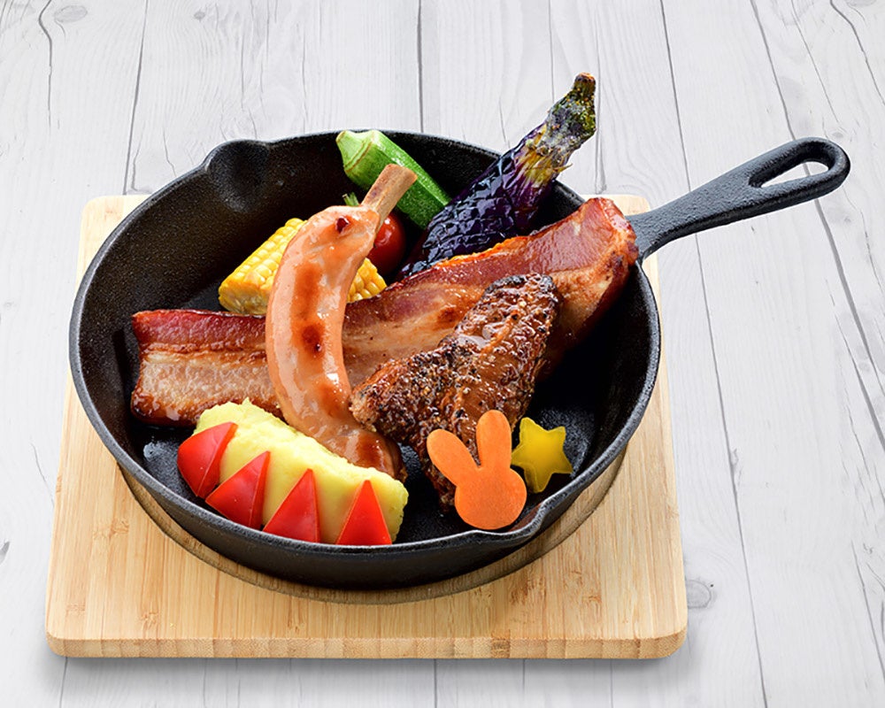 お肉たっぷり、ワイルドモードなひと皿を、デデデ大王がプロデュース!こんがり焼いた夏野菜も添えた、食べごたえのあるミートプレートです。野性味あふれる食後感に、ハンマーなどふりまわさないようご注意ください。
