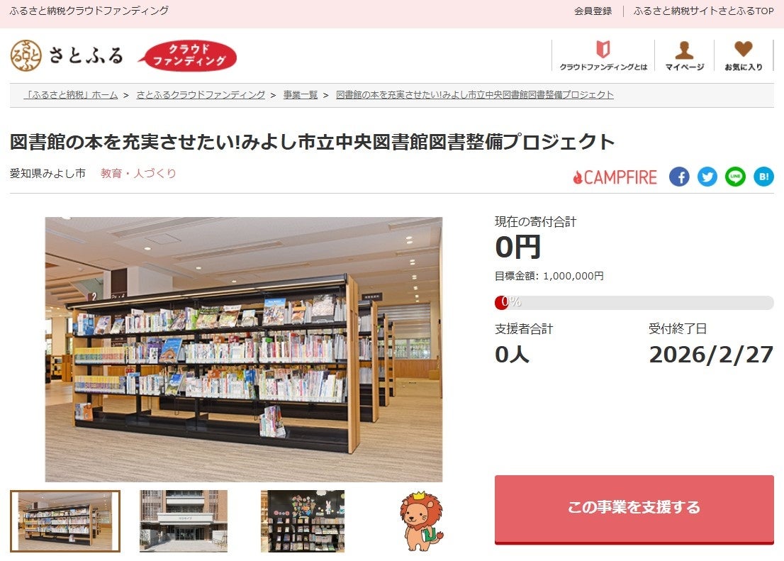 愛知県みよし市とさとふる、「みよし音楽祭」の開催と「みよし市立中央図書館」の蔵書充実のため、寄付受け付けを開始