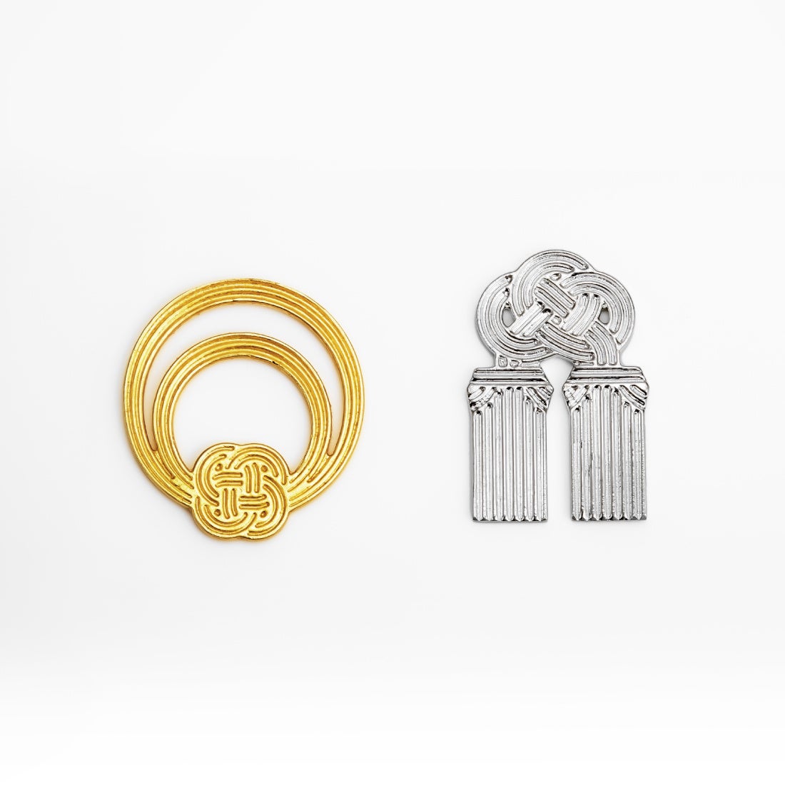 今回、平皿と箸置のデザインとして選ばれたのは『三日月宗近』と『鶴丸国永』。純度100%の錫製の食器特有のやわらかくも重厚感のある質感は、どこか刀剣を思わせるカラーリングです。また、食卓を華やかに彩るゴールドカラーには、同じ日本伝統工芸の一つである金箔を採用。美しい輝きを楽しめます。