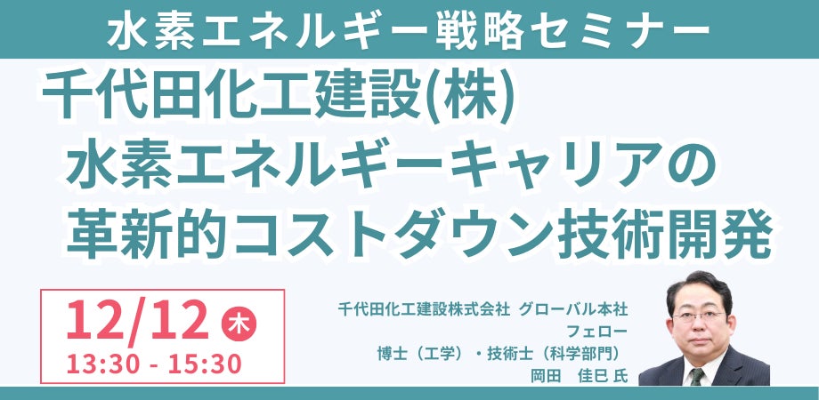 JPI(日本計画研究所)は、千代田化工建設株式会社 グローバル本社 フェロー 博士(工学)・技術士(科学部門) 岡田 佳巳 氏を招聘し、水素エネルギーキャリアの革新的コストダウン技術開発について詳説いただくセミナーを開催します。