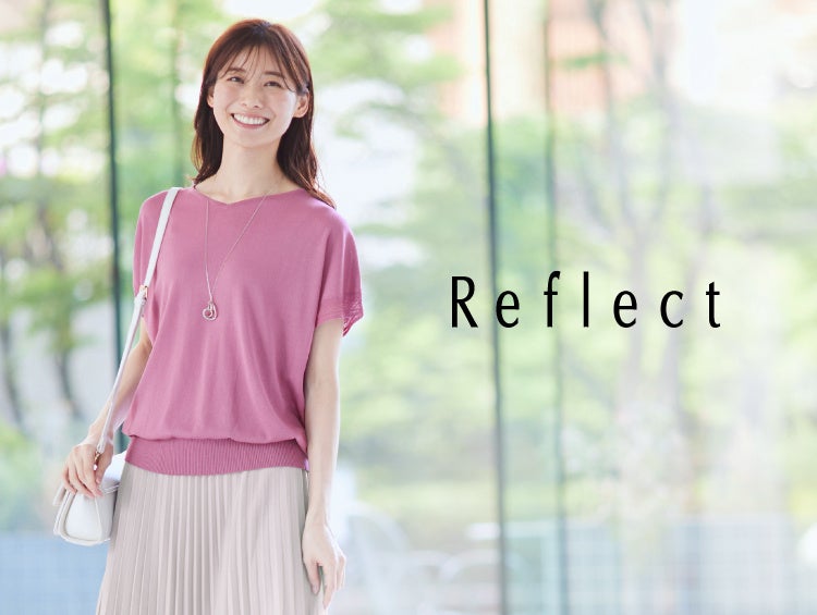 百貨店を中心に展開するReflect(リフレクト)は、いつも新しい感度にあふれながら自分らしく輝き女性らしい優しさ、柔らかさを忘れず、ものづくりに拘った日常のシーンに寄り添うアイテムを展開するレディースブランドです。