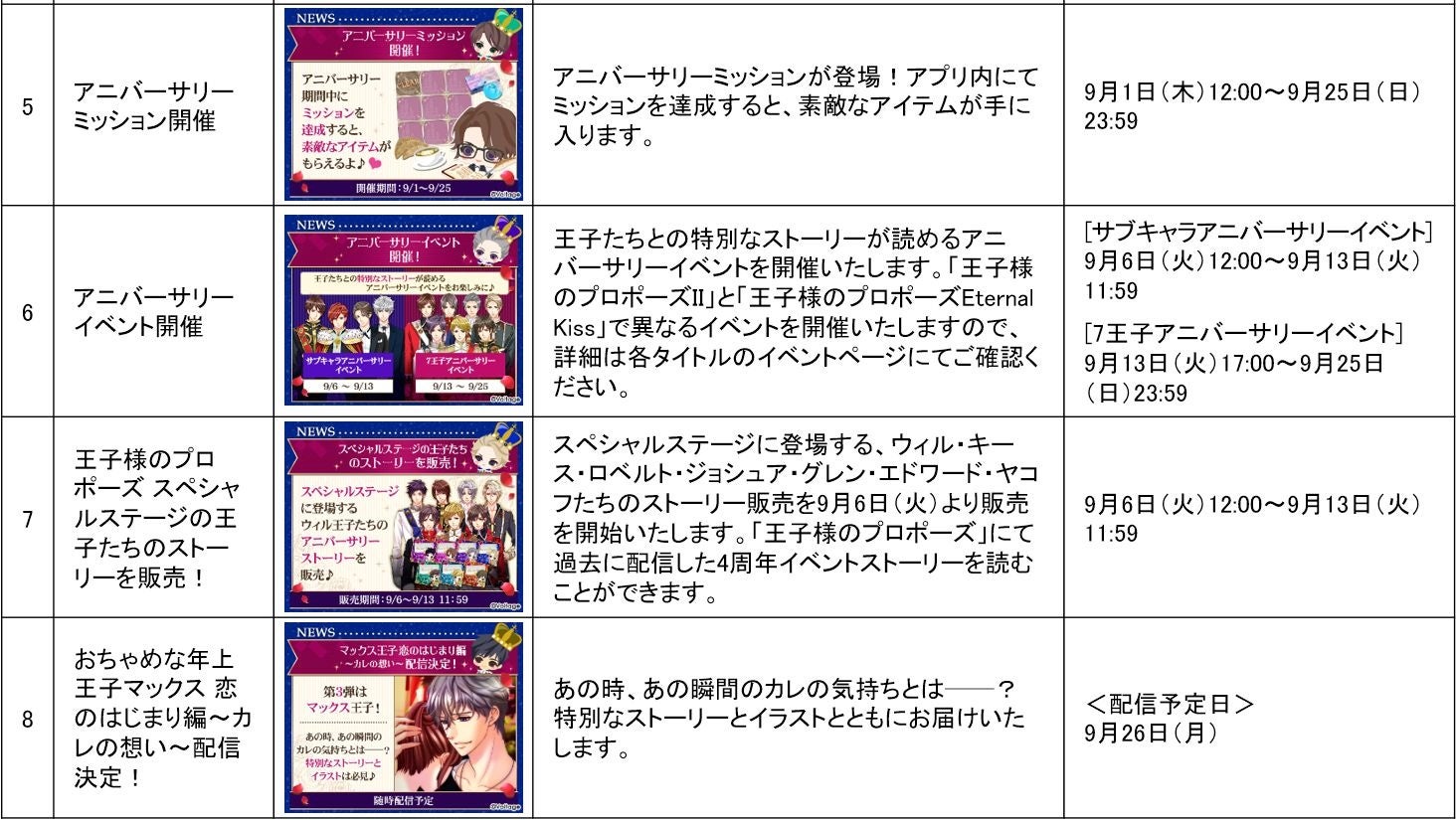 アニバーサリーを記念した特別な王子たちのイラストと、特別なショートストーリーが読めるセットを9月13日(火)より販売を開始いたします。