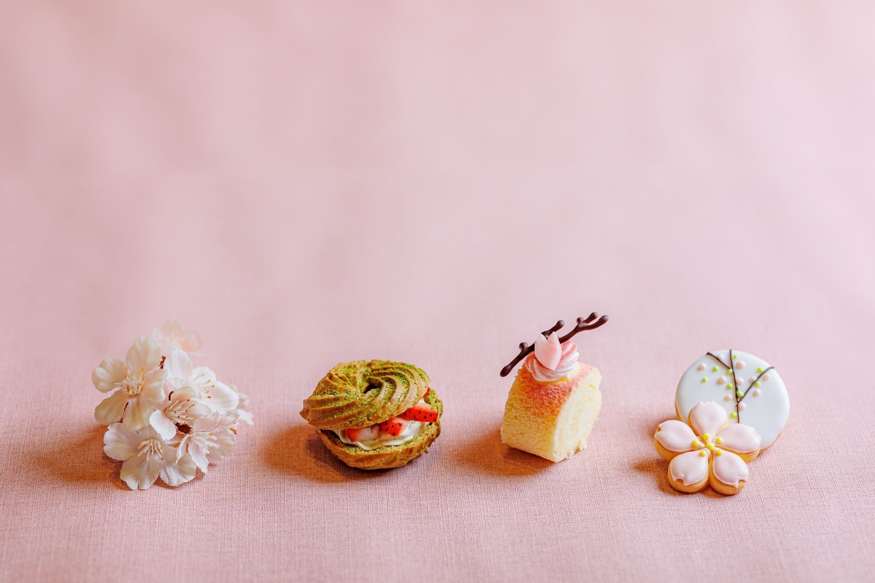 【スイーツ】桜と苺のシフォン/抹茶と苺のパリブレスト/桜と苺のジュレ/苺のムース 桜のジュレと桃のコンポート/桜と苺のモンブラン/桜のロールケーキ/桜のアイシングクッキー/桜のお饅頭