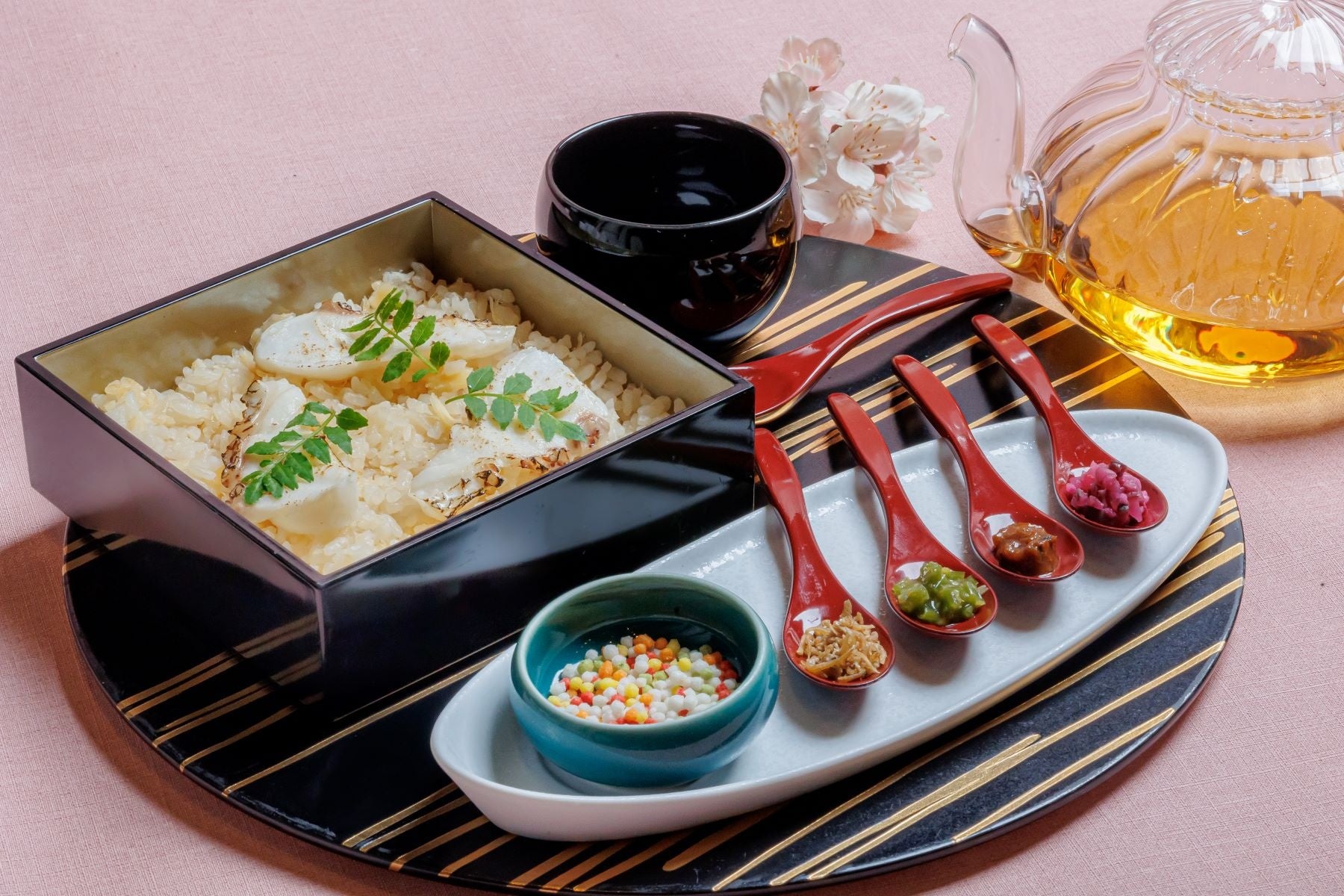 オプションには、5種類の薬味が付け合わせとしてついた鯛めし重をご用意しており、〆には出汁をかけて心も温まる鯛茶漬けをお召しあがりいただけます。