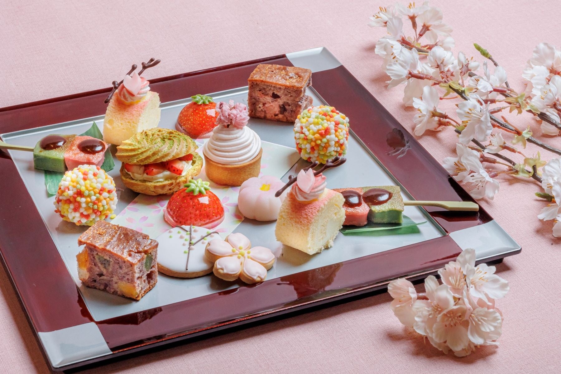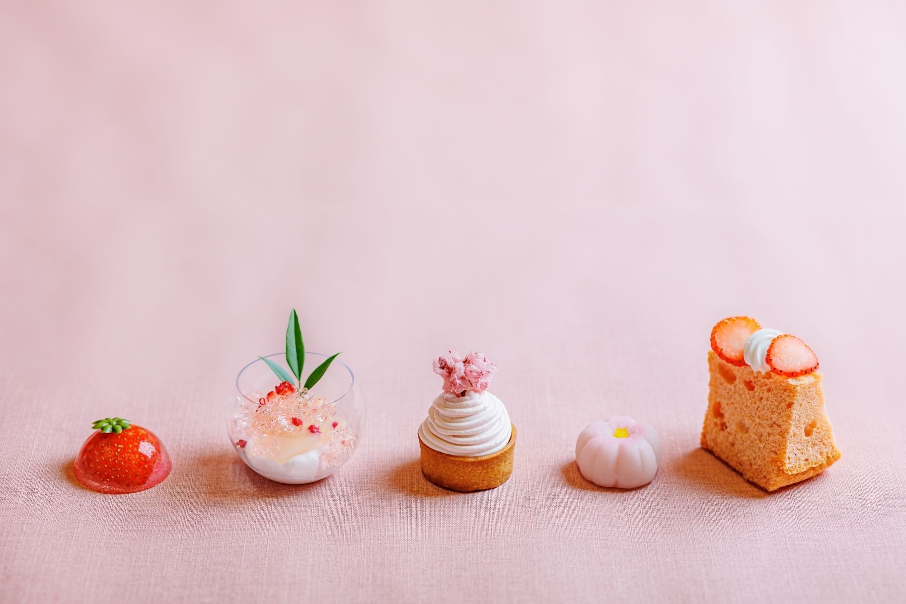 和と洋を取り入れたスイーツには、桜の香りがふわっと広がるいちごと桜のシフォンをはじめ、サクッとしたシュー生地に濃厚なカスタードクリームが入った抹茶のシュークリーム、フレッシュないちごとのバランスがマッチした抹茶といちごのパリブレスト、いちごを包み込んだ桜といちごのジュレ、桜のクリームが美しいほうじ茶の風味が薫る桜といちごのモンブラン、桜の花びらと枝に見立てたチョコレートを飾った春の季節感満載の桜ロールケーキ、餡子と桜のお饅頭などお花見シーズンに春らしさ溢れるスイーツを用意しました。