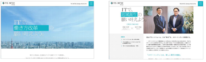 外部有識者や著名人とグループ社員による対談記事や特別対談動画を掲載し、ターゲットである一般ビジネスマン向けに、ブランドメッセージである「ITで、社会の願い叶えよう。」をメインテーマとして、様々な領域で社会課題解決を目指すTISインテックグループの取組みを紹介していきます。