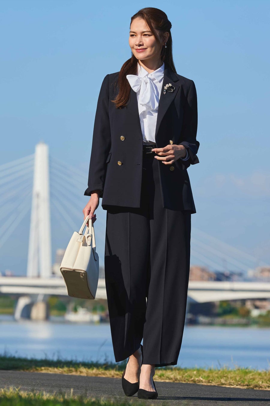 セレモニーの後は、デニムやカットソーなどカジュアルアイテムと合わせて日常使いでも大活躍。学校行事から週末のお出かけまで、さまざまなシーンで着用いただける汎用性は、オンオフ問わず女性のライフスタイルに彩りを添えます。