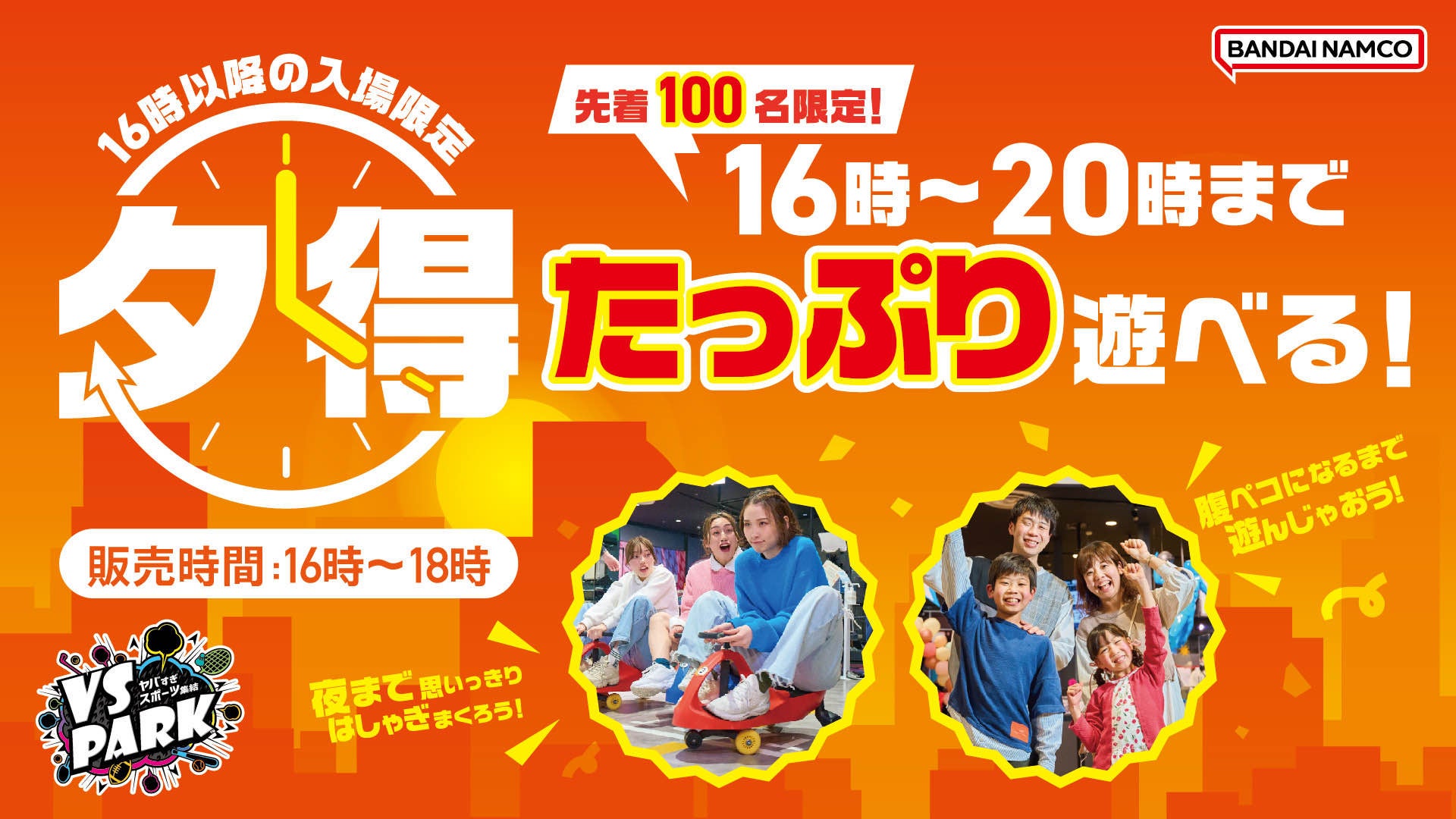 好評につき定番プラン化! 16時以降はVS PARKで最大240分たっぷり遊べる! 9月27日(水)より『夕得』プラン開始!