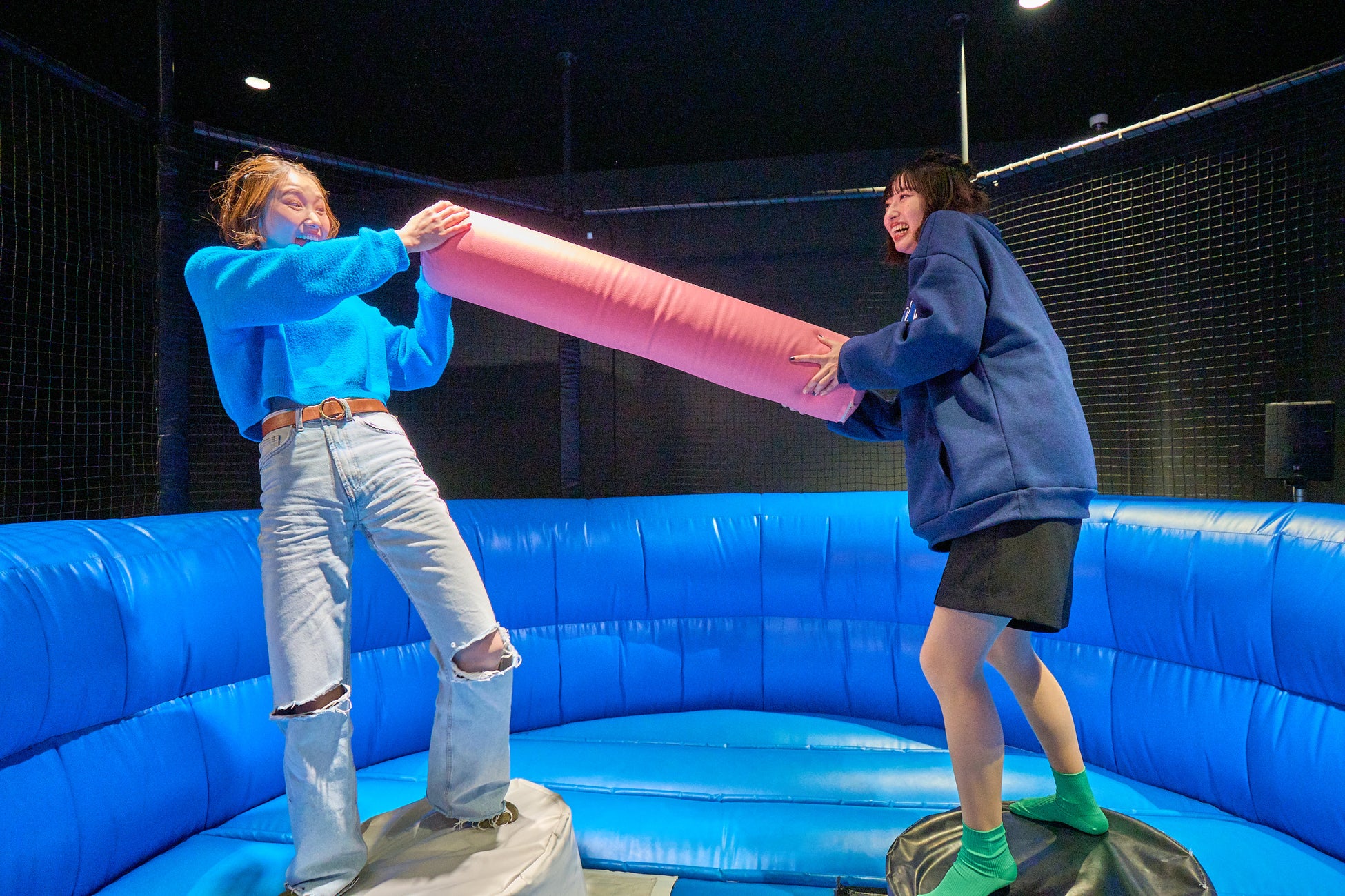体を動かしながらまるでバラエティ番組に参加しているような体験ができる新感覚のバラエティスポーツ施設です。学生グループやファミリーのお客さまから、「全力ではしゃげる施設」と多くの支持を得ています。
