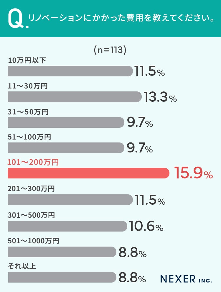 そこで今回は、リノベーション・リフォームのRE:daysと共同で、事前調査で「リノベーションを実施したことがある」と回答した全国の男女113名を対象に「リノベーションの費用」に関するアンケートをおこないました。