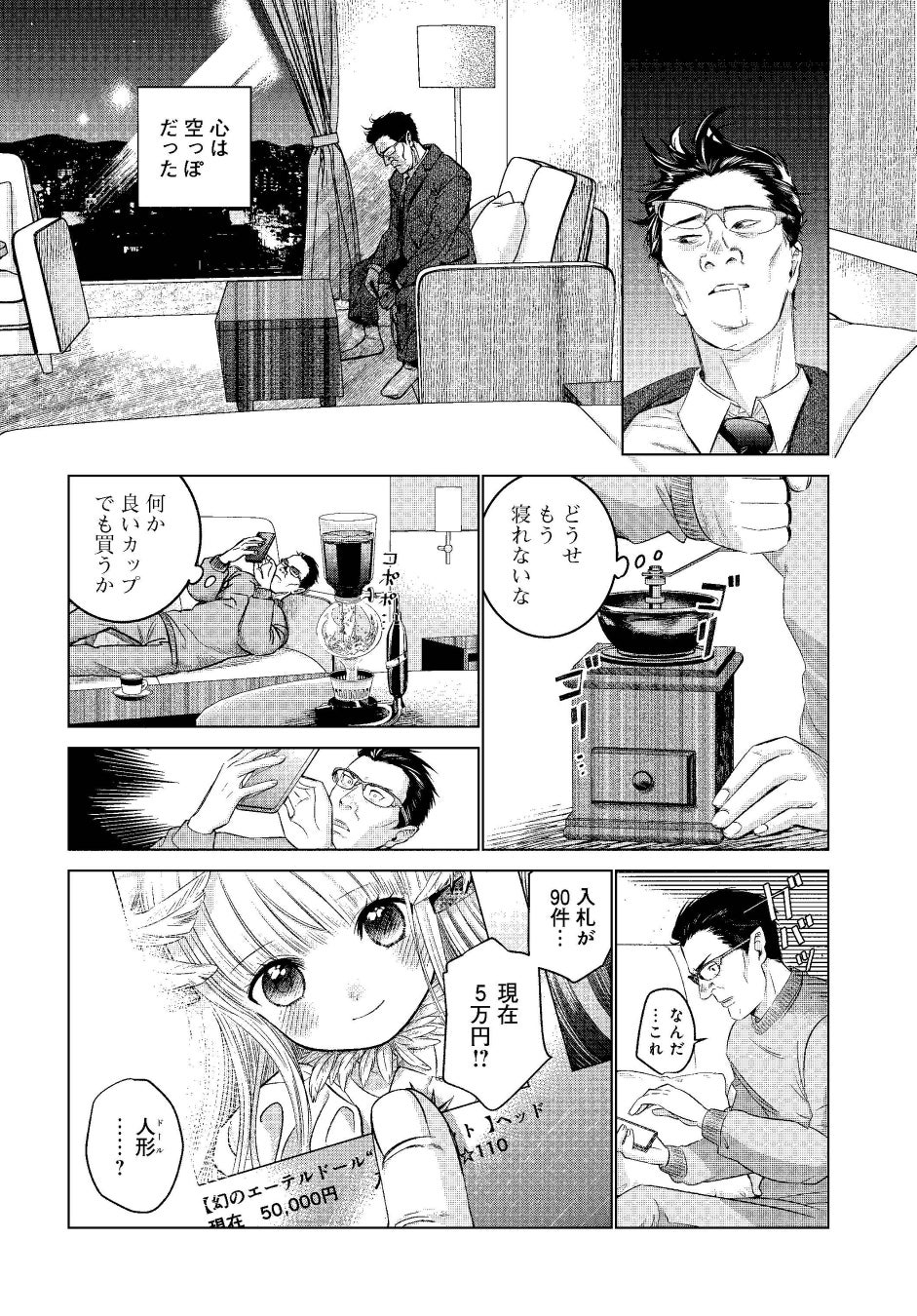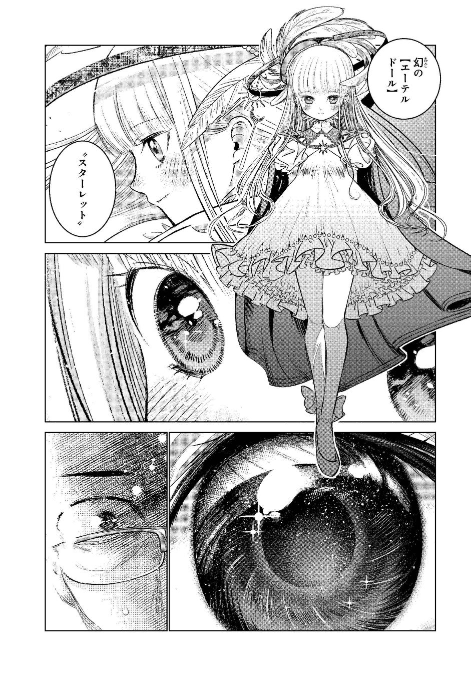 42歳のサラリーマン、矛橋真澄。会社で部下からは疎まれ、恋人もおらず、 これといった趣味もない。灰色の日々を送るおじさんだった。 しかしある日オークションで幻と呼ばれる人形、【エーテルドール】〝スターレット〟を見つける。その可憐な姿と星の輝きを秘めた瞳に一目惚れし、気付けば競りに参加して…。