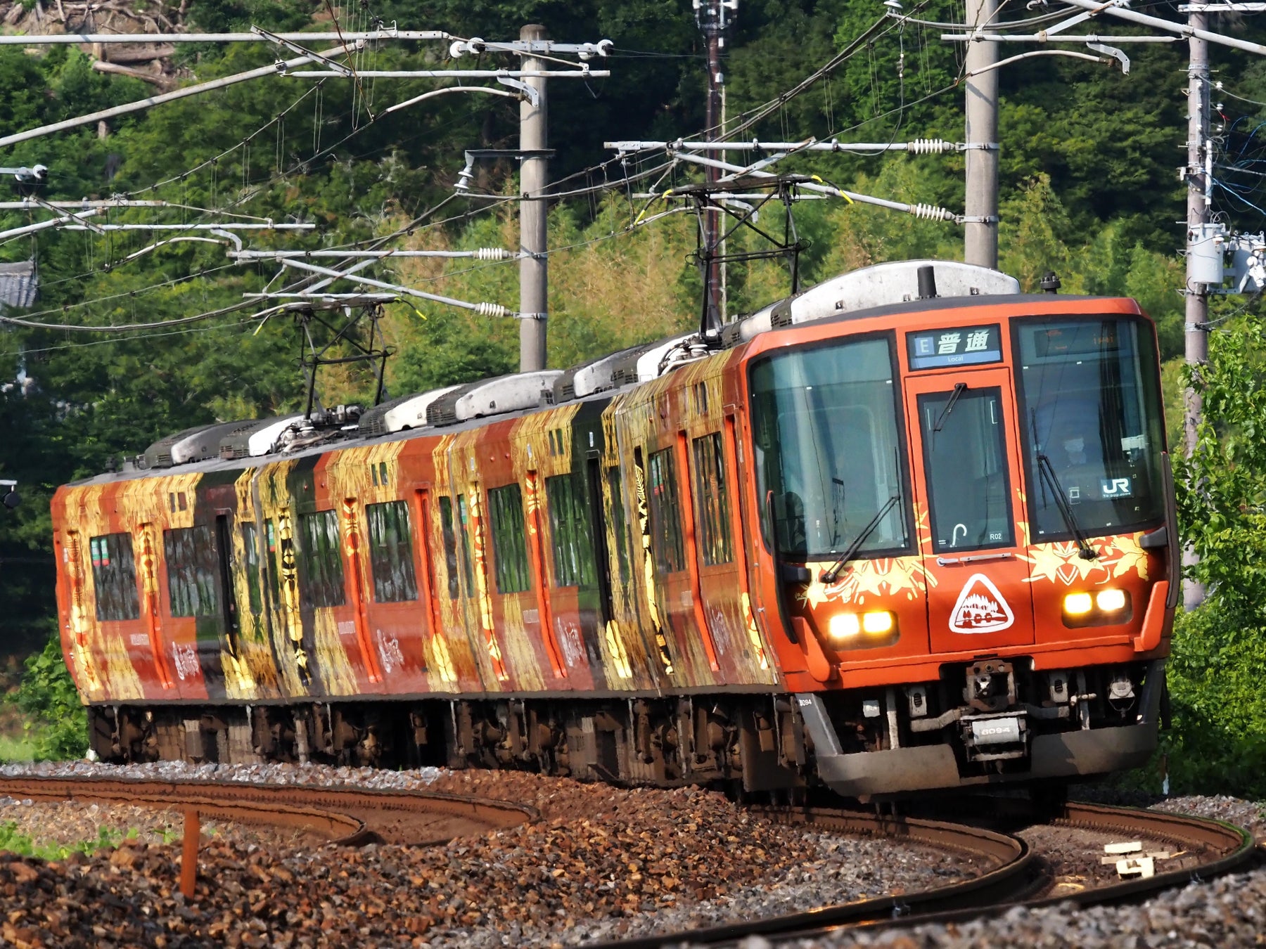 往路:森の京都の魅力があふれる223系4両編成ラッピング車両