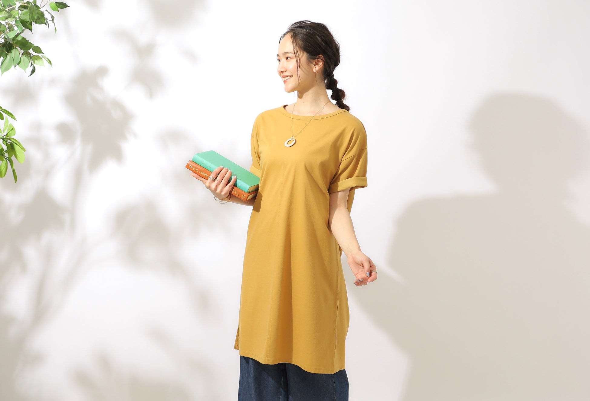 ▪デザイン:程よいサイズ感で気になる腰回りや二の腕もカバーでき、サイドの裾にはスリットが入っているので動きやすいのもポイントです。ゆったりとしたワイドパンツや細身のパンツとのコーディネートがおすすめです。