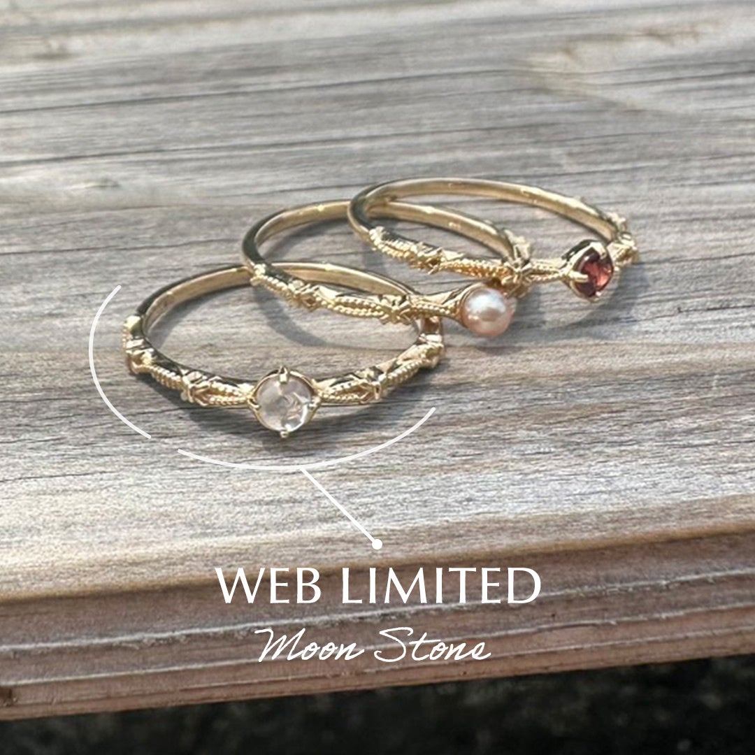 プレゼントを受け取るときのあたたかくてワクワクする気持ちをイメージしたリング。中央にはムーンストーンをあしらいました。