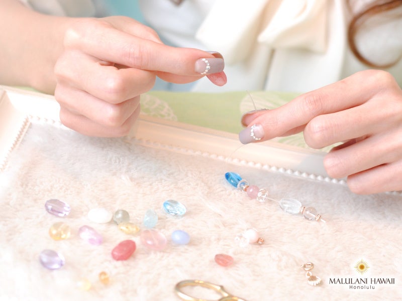 ハワイ発祥の天然石アクセサリーブランド「マルラニハワイ」では、 天然石の加工段階でできる傷やへこみ、ビーズの穴の位置など、 自社基準により選定し、 アクセサリーを作成しています。