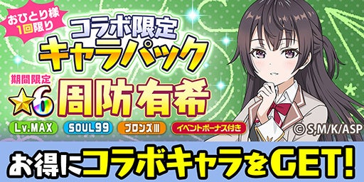 ※「★6 周防有希」はパック限定のキャラクターとなります。コラボ召喚では入手ができないため、ご注意ください