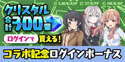 『「青春ブタ野郎」シリーズ』、『時々ボソッとロシア語でデレる隣のアーリャさん』、『恋は双子で割り切れない』とのコラボを記念したログインボーナスを開催いたします。
