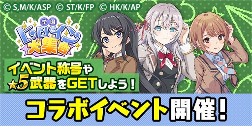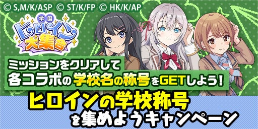 期間限定のミッションをクリアして、『「青春ブタ野郎」シリーズ』、『時々ボソッとロシア語でデレる隣のアーリャさん』、『恋は双子で割り切れない』に登場するキャラクター達が通っている学校の称号を集めましょう。