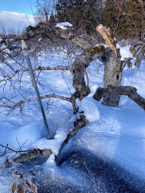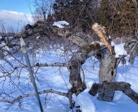 【秋はクマ、冬は豪雪の二重被害】気候変動の影響による「ドカ雪」「重い雪」でりんご枝が折れる