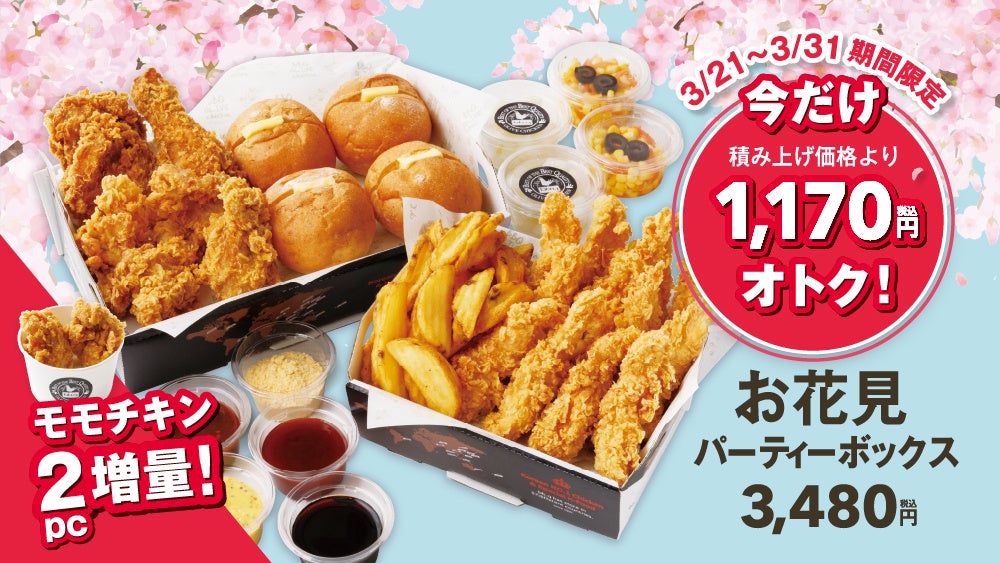 『オリーブチキンカフェ』では、大切な方とのお出かけのおともにオリーブチキンをお届けしたく『お花見パーティーボックス』の販売を期間限定で実施いたします。