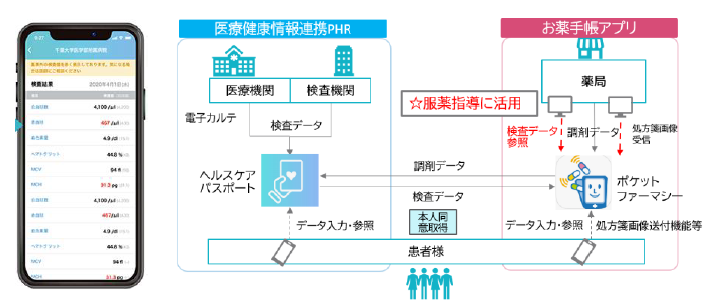 TISの地域医療情報連携サービス「ヘルスケアパスポート」の検査値を電子お薬手帳「ポケットファーマシー」へ連携
