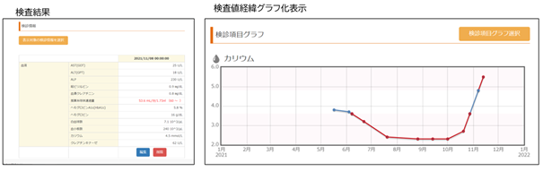 ・検査値の記録を時系列・グラフ化でき、患者の体調変化を可視化