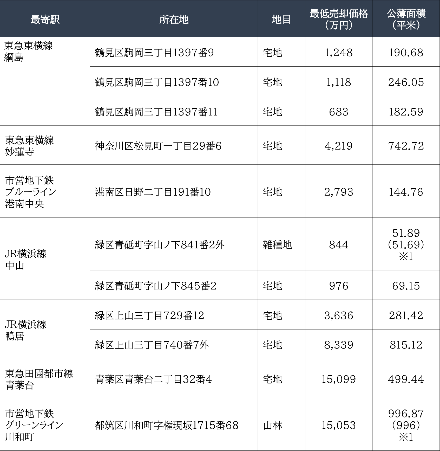 最寄駅 | 所在地 | 地目 | 最低売却価格 (万円) | 地積 (㎡) |