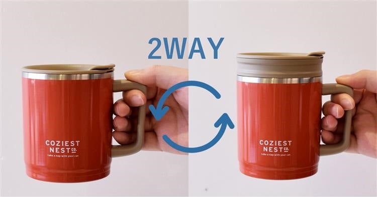 吸熱素材が温度を一気に下げ、70℃前後の適温をキープしてくれる猫舌の方向けのマグカップ。