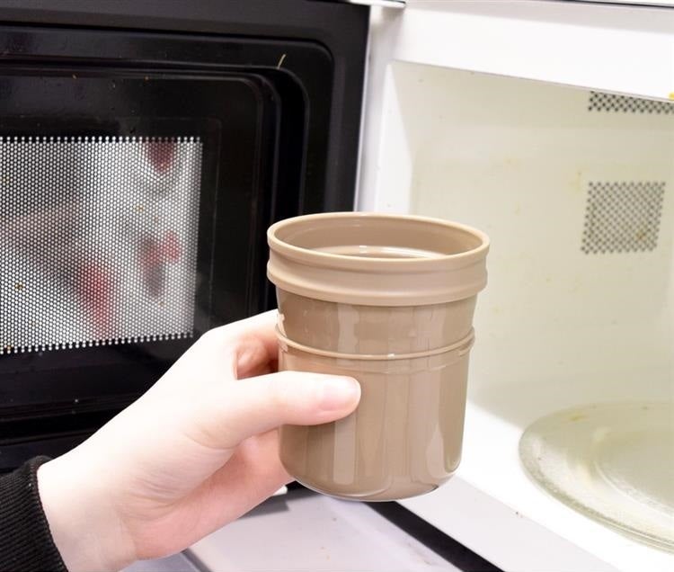 内側の目盛がスープなどを作るのに便利。冷めてしまってもインナーカップを電子レンジで温め直し可能。