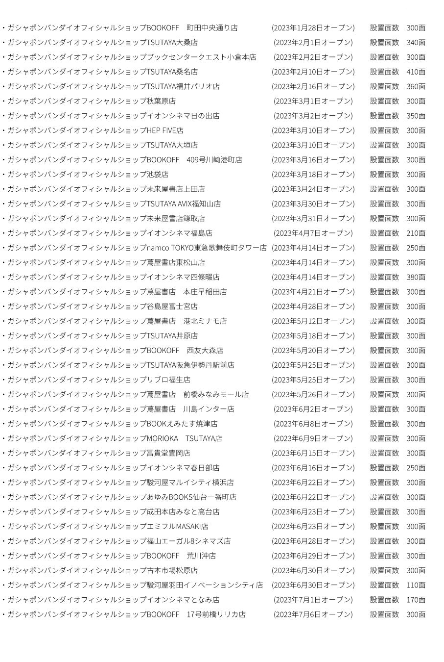 【日本国内展開中の『ガシャポンバンダイオフィシャルショップ』店舗リスト:計109店舗】