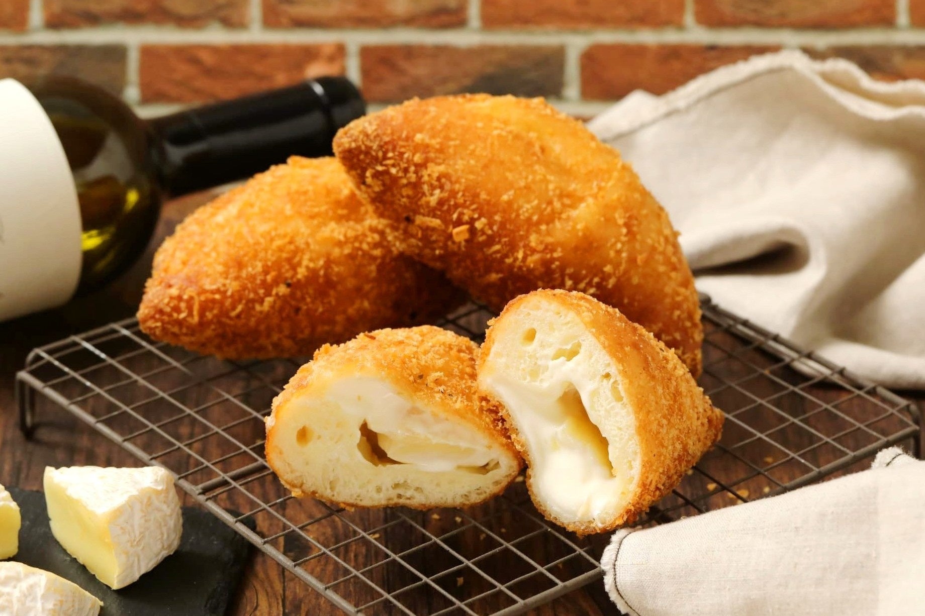 ースを生地で包み、表面にパン粉をまぶしてカラッと揚げました。外はサクッ中はモチッと