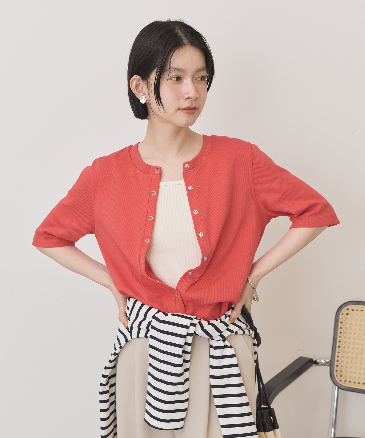 【マルチ機能】リブ半袖カーディガン