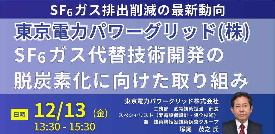 【JPIセミナー】東京電力パワーグリッド(株)「電力用SF6ガスに関する国内外の最新動向を踏まえた脱炭素化に向けたSF6ガス代替技術開発の取り組みと将来展望」12月13日(金)開催
