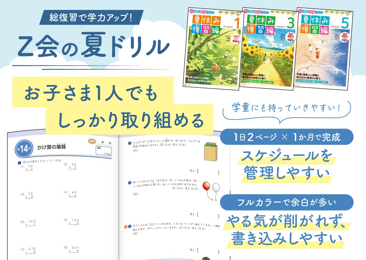 株式会社増進会ホールディングス(Z会グループ)のグループ会社、株式会社Z会ソリューションズは、小学生を対象に『Z会小学生わくわくワーク 夏休み復習編』を2024年6月7日(金)に発刊。